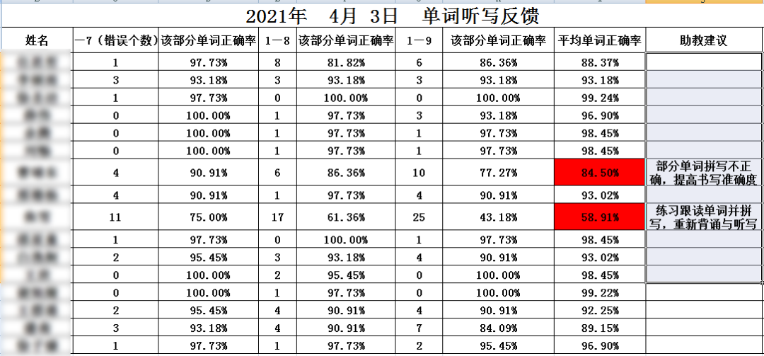 从入学开始,每日早饭后进行词汇听写,每日晚饭后进行句子听写,根据听写结果进行学习反馈,及时查漏补缺。